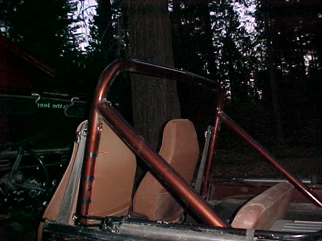 First, the cage I wanted had to be the style that had a front hoop that was parallel to the rear hoop. Since I have removed my dash pad and wasn't planning on using it again I also wanted the front hoop to ride as close as possible to the windshield frame. This would be so that my visibility would not be impaired and the entry way (between the front of the seat and the side of the tub) could be as "open" as possible. |