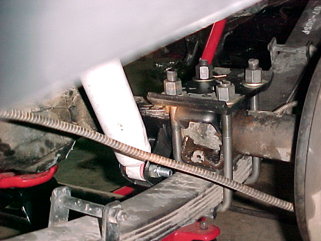 The "spring tie plate" is the part that the U-bolt's threads fit through. On the CJ's front spring tie plates, the anti-swaybar links are attached. On the rear spring tie plates, the shock absorbers are attached. Both of these parts need to be address when adding a U-bolt flip kit.