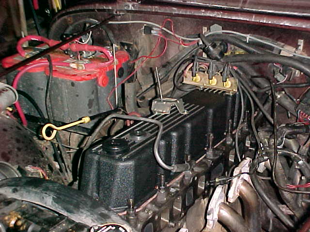 The next concern I had when looking into an aluminum valve cover was that many covers have a note that reads "may require some drilling and/or tapping holes" in the cylinder head! The thought of that seemed a intimidating to me. How many holes would I have to drill? How hard will it be to access these holes? The hard part is, you really won't know for sure until you remove your old valve cover. What to do? I debated all this for quite some time until I finally found myself faced with another project (removal of the intake manifold) that was going to expose the motor and provide a good opportunity to tackle the leaking valve cover dilemma!