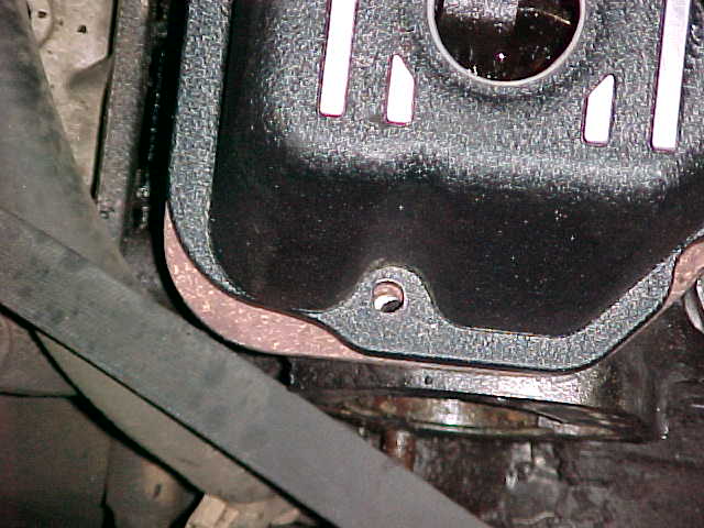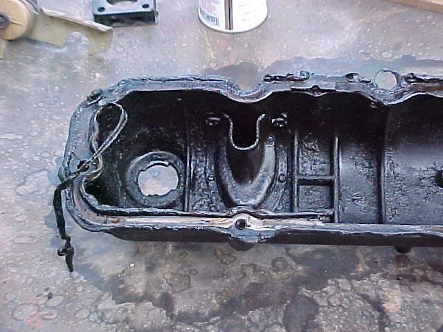 Bottom view of stock valve cover showing the forward baffle just behind the oil fill hole.